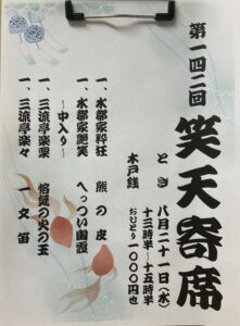 昨日21日(水)は第142回笑天寄席でした。