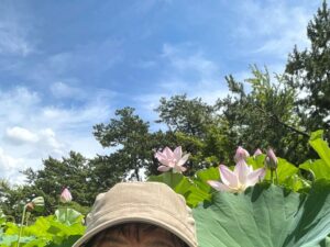 他人様の身体をお借りして蓮の大きさをお伝え。