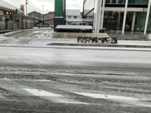 気温もかなり低く、朝の道路はペカペカ凍結の上に雪が重なって、車はかなりのノロノロ運転。