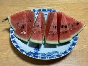 夕食後のデザートに、昨日の残り半分の西瓜を頂きました。