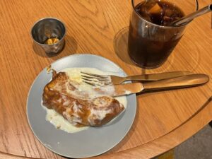 更に、セットのデザートを、このカフェのウリという「飲めるフレンチトースト」に変更してもらって(Aとシェアしてから撮影したので、ちょっとバえない写真で失礼)、