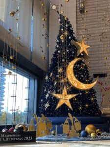 東京駅周辺が一体となったディズニーコラボのスタンプラリーで、各ビル・お店の様々なツリーを楽しみながら、2人でシャカシャカ結構歩きました。