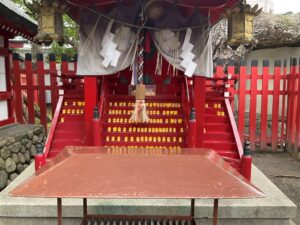 明治の合祀だろうと思っているのですが(いいかげん裏取れや!)、この裏道(?)にはいくつものお社が並んでいて、列に並びながら、いつものように1つずつお詣りをして行きましたが、私の主目的はこちら。