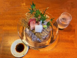 なんとか綺麗に撮れた、お刺身盛り合わせとデザートを御覧下さい。💦