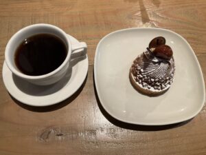 私はモンブラン、ドビーはチーズケーキ。