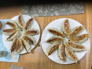 庭の韮をたっぷり刻んで、キャベツもタップリ。