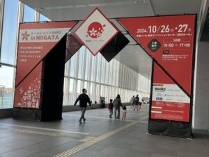 懐かしき上越高田公園の桜紹介ブースやお馴染み燕市のカトラリーやタンブラー等産業資料館ブース、小千谷縮、亀田縞、佐渡金山、弥彦(神社・温泉)、十日町市博物館の「火焔型土器」、花火、米&米菓、鮨、ラーメン、マンガ・アニメ…etc.
