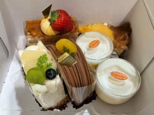 まずは、なるべくパリパリのうちに…というミルフィーユと、今回初めて買ってみた洋梨のキャラメルロールを選抜。