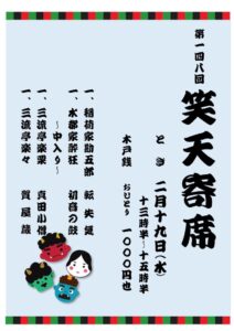 さて、来週26日はしんこ屋寄席ファイナル!(しんこ屋が3月始めに閉店の為)