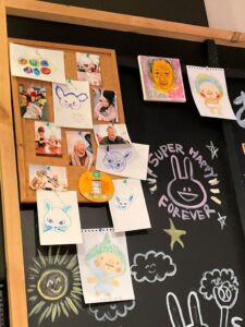 舞台下手のボードに貼ってある絵は、実際に「いろ葉」の入所者の方が描いたものだそうです。