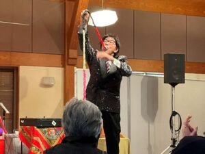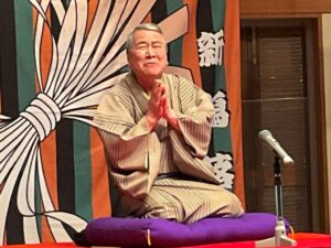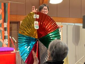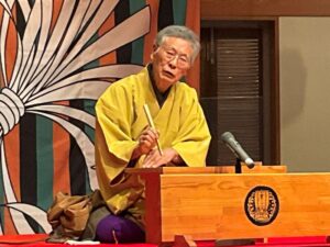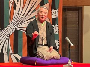 最近お決まりの、めくり担当?…と思ったら、ゲストの湖畔亭おおやぶさんが見台をお使いになるとの事で、見台セッティングに慣れているのっぺさんが担当して下さるとの事。