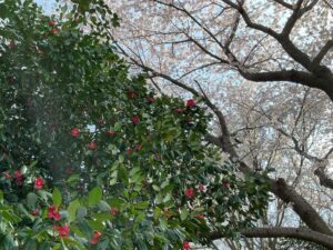 椿もまだ花盛り。 桜と椿の共演も、新潟だから…かな?