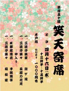 ど~も、笑天寄席の日は悪天候が多いような気がするんですが… 気のせいかしらん?