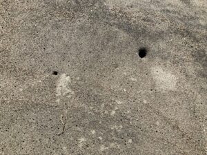 波打ち際近くの砂には、いくつも蟹穴が有りました。