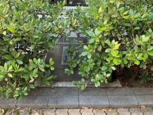 生垣の枝を掻き分けて、両肘と両膝で抑えて(かなり変な恰好)、ようやく全貌を撮影出来ました。