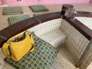 みどり湯さんは関西式銭湯の作りとの事で、洗い場の真ん中に丸い大浴槽。