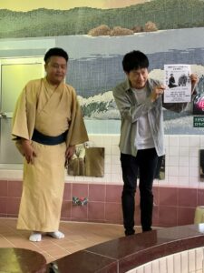 「銭湯大使」Tシャツの五円さんの挨拶で開始。