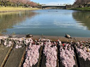 側溝や水の有る場所は花筏…というより花で埋もれている所も…